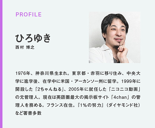 移住。同年、英語圏最大の匿名画像掲示板「4chan」を買収し管理人に就任する。 ひろゆきの来歴は、2ちゃんねるの歴史であり、4chanや8chanなどCHANカルチャーの歴史でもある。以下でそれを追っていく。 ひろゆきが1999年に開設した巨大匿名掲示板群「2ちゃんねる」を「2ch.net」(現・5ちゃんねる「5ch 245キロバイト (37,268 語) – 2022年6月26日 (日) 09:13 |