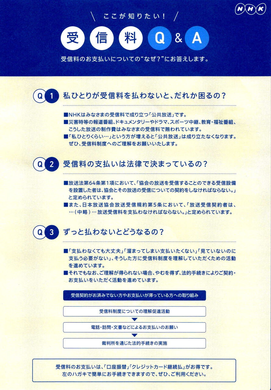 NHK 受信料未払いに割増金 4月から、2倍請求 !!!!!!!エンタメ 2023.03.29NHK受信料NHK受信料(エヌエイチケイ じゅしんりょう)とは、日本放送協会(NHK)と受信契約している人が同協会に支払う料金。 日本で放送が始まった頃は社団法人日本放送協会(当時)によるラジオ放送であり、聴取料が存在した。 当時、ラジオ放送は「聴取無線電話」と称していた。まずラジオが聴ける設備を設置した場合、…119キロバイト (18,472 語) – 2023年3月28日 (火) 14:24(出典 pirctantey.blogspot.com)これは酷い話ですね(出典 NHK、受信料未払いに割増金 4月から、2倍請求 [蚤の市★])続きを読む Source: 芸能ニュースまとめ速報