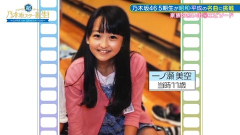 【画像】一ノ瀬美空、11歳の時点で顔がほぼ完成形www【乃木坂46】