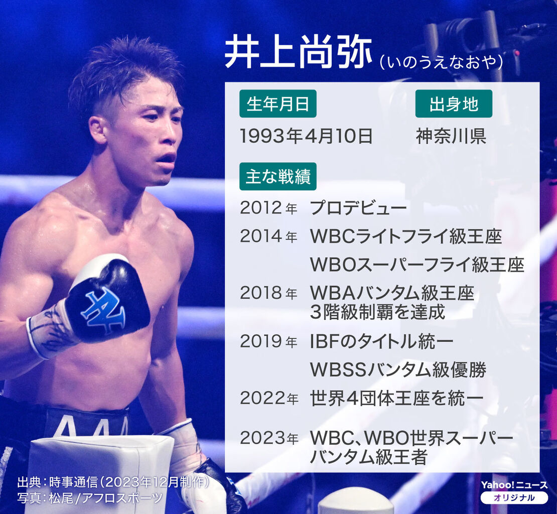 【快挙】井上尚弥 10回KO勝ち 史上2人目の複数階級での世界4団体統一達成エンタメ 2023.12.27井上尚弥井上 尚弥(いのうえ なおや、1993年〈平成5年〉4月10日)は、日本のプロボクサー。神奈川県座間市出身。大橋ボクシングジム所属。現WBAスーパー・WBC・IBF・WBO世界スーパーバンタム級統一王者。元WBC世界ライトフライ級王者。元WBO世界スーパーフライ級王者。元WBAスーパー・WBC・I…154キロバイト (20,307 語) – 2023年12月26日 (火) 23:16史上2人目という偉業を達成した井上尚弥に賞賛の言葉を送りたいです。彼の努力と才能が結実し、4団体の統一王者となることができました。彼のボクシングへの情熱と愛が勝利をもたらしたのだと思います。(出典 【ボクシング】井上尚弥が10回KO勝ち 史上2人目の複数階級での世界4団体統一達成 ★3 [愛の戦士★])続きを読む Source: 芸能ニュースまとめ速報