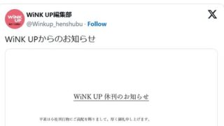 エンタメアイドル誌「WiNK UP」が2025年6月号で休刊へ 37年の歴史に幕 読者から悲しみの声続々 1988年の創刊以来、多くのアイドルファンに愛され続けてきた月刊誌『WiNK UP』(ワニブックス)が、2025年5月7日発売の6月号をもって休刊することが発表された。 同誌は「アイドル・ビジュアル・マガジン」として、旧ジャニーズ事... 2025.03.25エンタメ