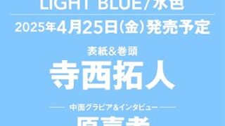 エンタメ「ザテレビジョンCOLORS Vol.60 LIGHT BLUE」表紙はtimelesz寺西拓人!中面に原嘉孝 4月25日発売の雑誌「ザテレビジョンCOLORS Vol.60 LIGHT BLUE」の表紙&巻頭は、timeleszの寺西拓人さんです。 中面グラビア&インタビューにtimeleszの原嘉孝さんも登場します。 予約受付中です。... 2025.03.18エンタメ