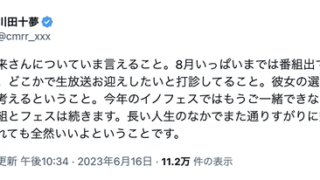 エンタメ【事務所発表全文】関西ジャニーズJr.小柴陸が無期限活動休止 指導、監督方法の見直しに言及 「株式会社ジャニーズアイランド」が16日、公式サイトに文書を掲載し、関西ジャニーズJr.の9人組・A... → 【事務所発表全文】関西ジャニーズJr.小柴陸が無期限活動休止 指導、監督方法の見直しに言及 | デイリースポーツ芸能 ... 2023.06.16エンタメ